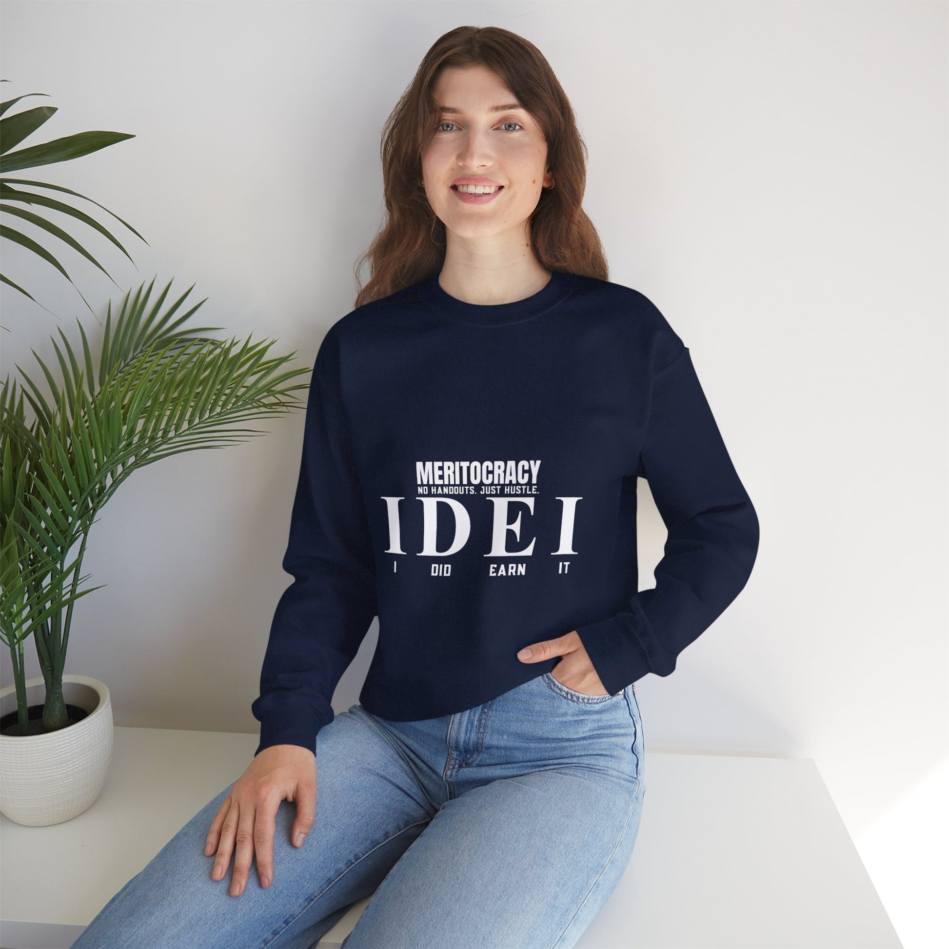 Meritocracy Crewneck Sweatshirt – No Hangout Just Hustle | IDEI “I Did Earn It” Motivational Pullover